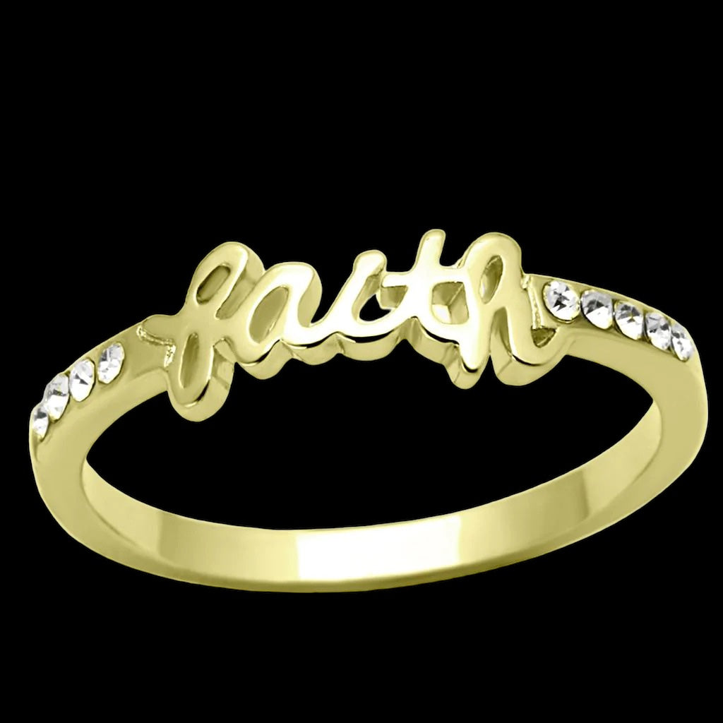 LO3967 - Flash Gold Brass Ring with Top Grade Crystal in Clear
