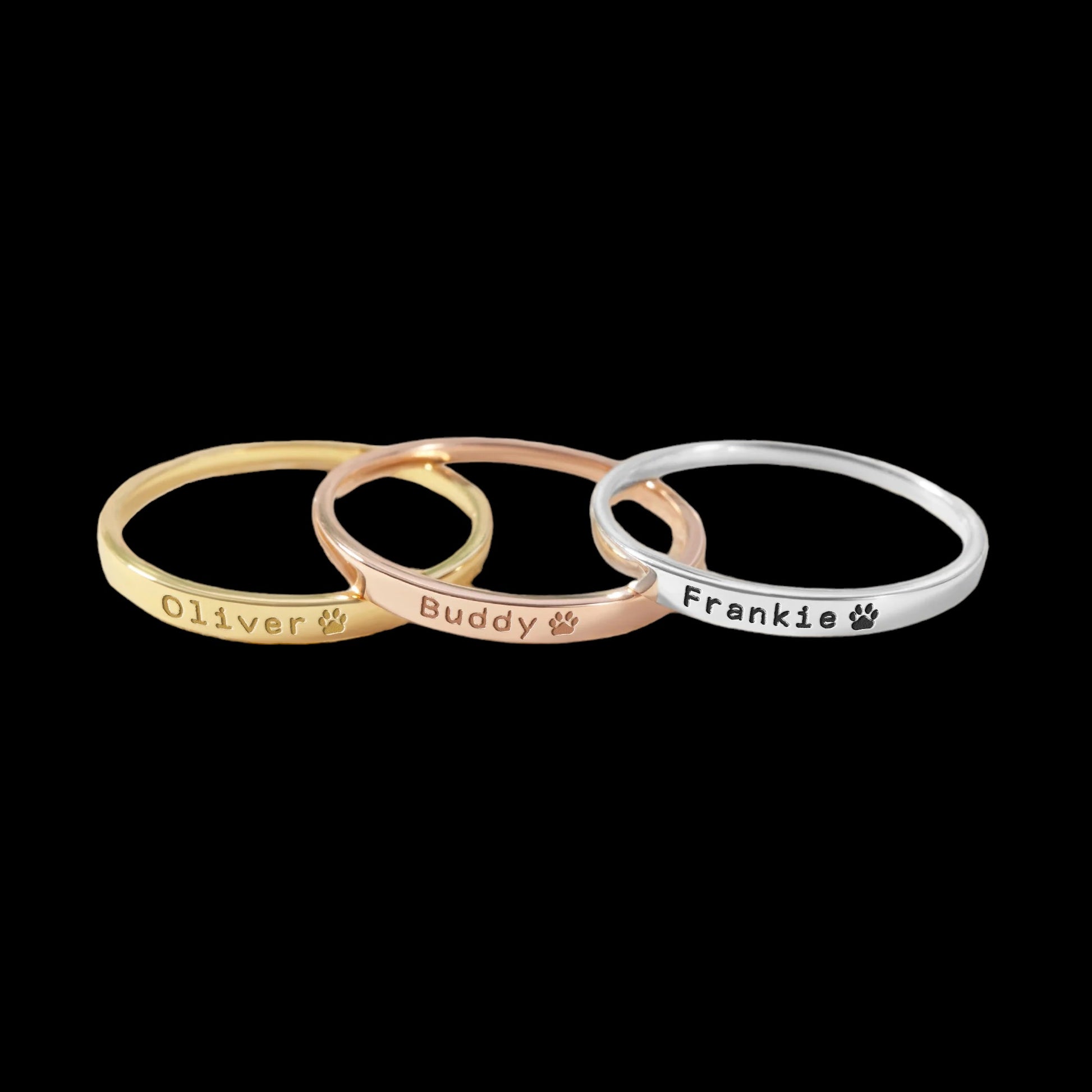 Pet Memorial Gift, Pet Name Ring, Paw Print Ring, Dog Mom Gift